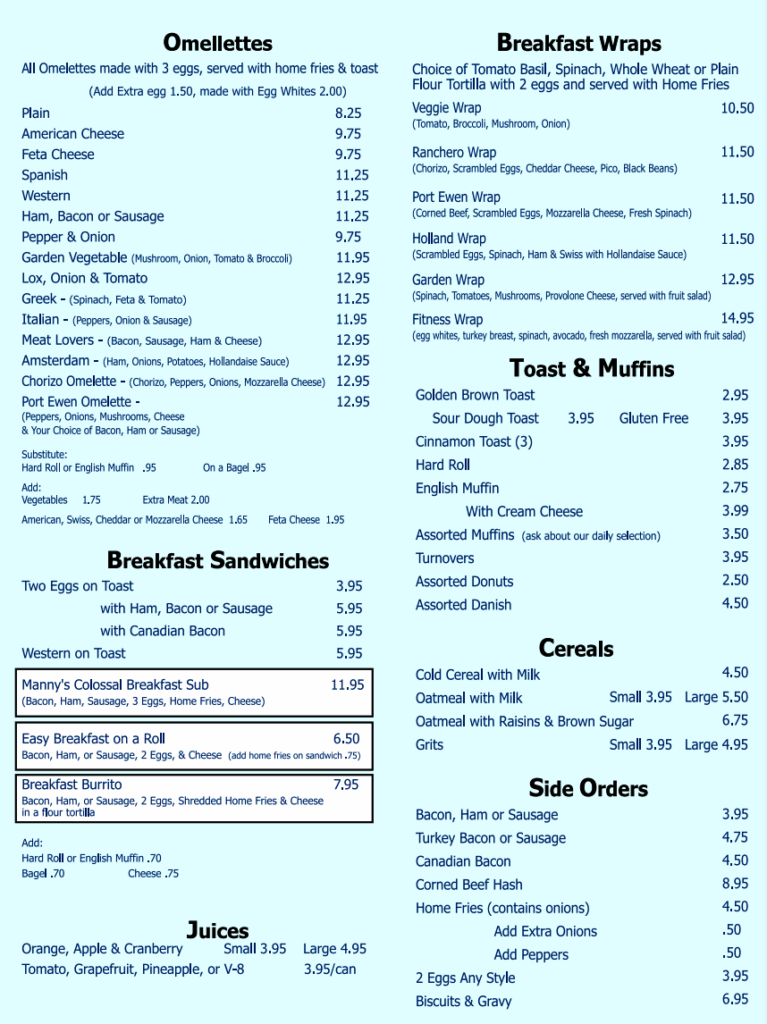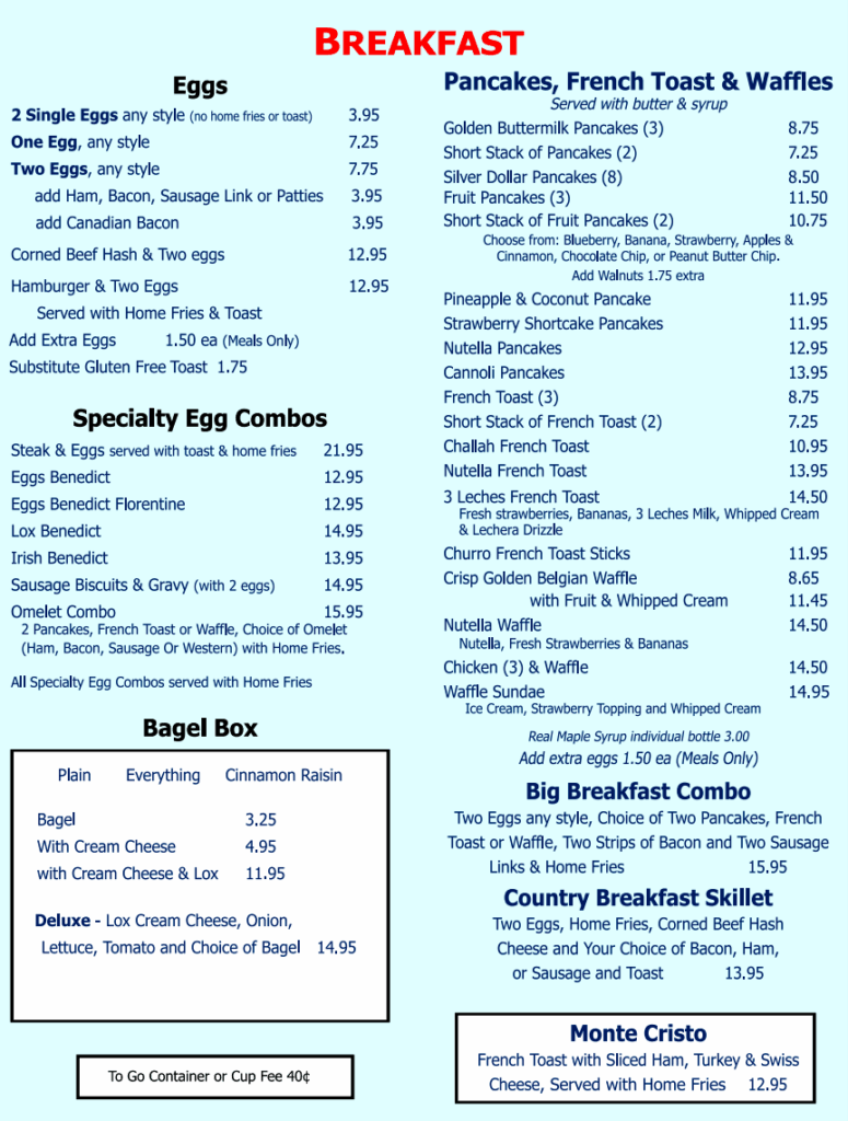See our breakfast menu for omelettes, waffles, pancakes and more!